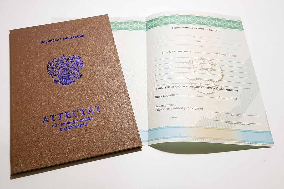 - Комплект: Аттестат + твёрдая обложка + приложение
