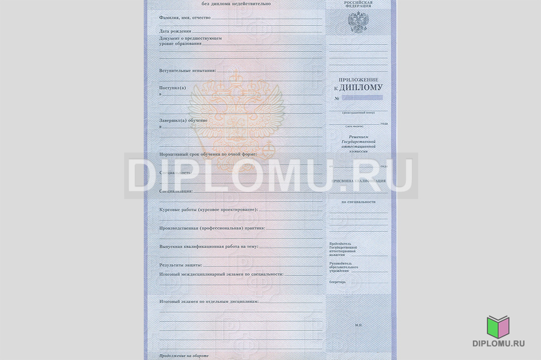 - Комплект: Диплом + твёрдая обложка + приложение